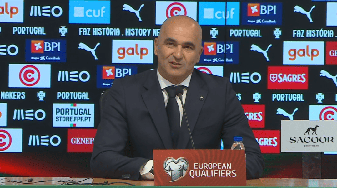 虎扑10月15日讯 葡萄牙国家队主教练罗伯托-马丁内斯出席2-2战平匈牙利的赛后发布会。